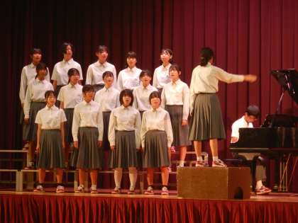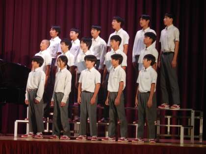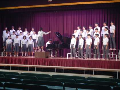 1組自由曲「未来への旅」。「勇気を出して、自分を信じて」広い世界へ進んでいく決意の歌。イメージしながら歌えたかな?