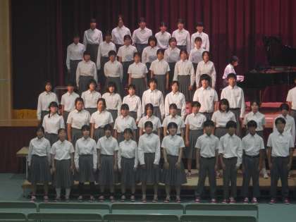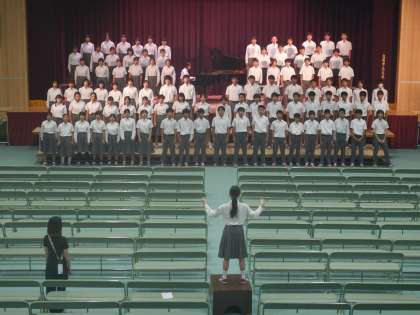 保護者の皆さんが退場し、2年生全体合唱の練習です。