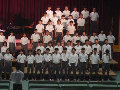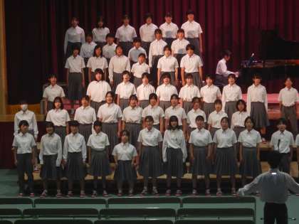 全体合唱は、人数が多い分、1人ひとりの負担も少ないと思います。その分、合わせるのが大変かと思います。指揮と伴奏をしっかり見て聞いて歌いましょう。!!