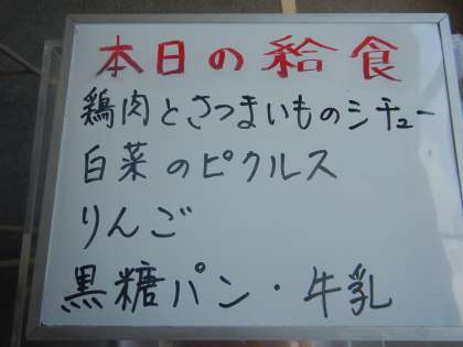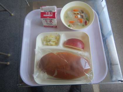 鶏肉とさつまいものシチューは、野菜がふんだんに入っていて、ちょっと量も多いかな?と思いましたが、全クラス完食しました。おいしかったでしょう!!