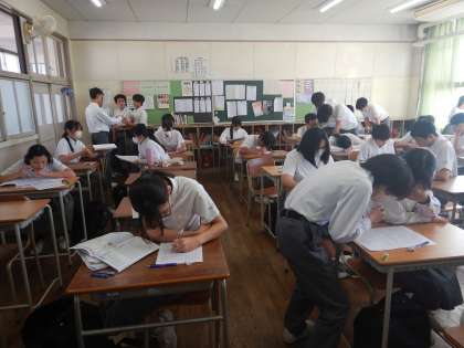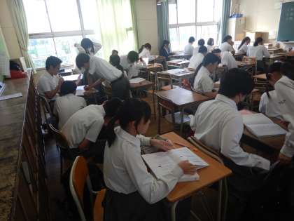 昨日まで、どれだけ復習できましたでしょうか?休み時間も、お互いに問題を出し合って答えている生徒もいました。