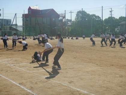 学年演技は、棒引きです。ホームページでは、2回目の練習風景になります。
