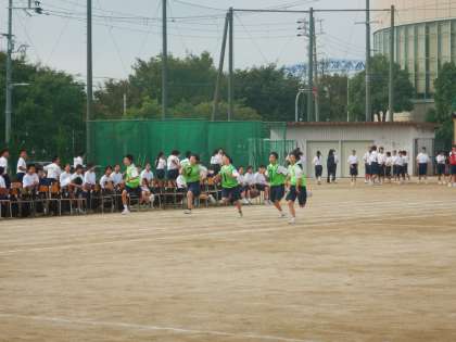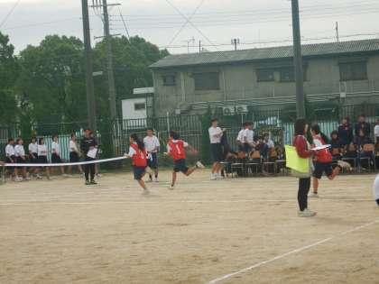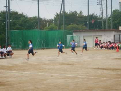 運動場を半周走ります。カーブがあるので、転ばないようにね。。