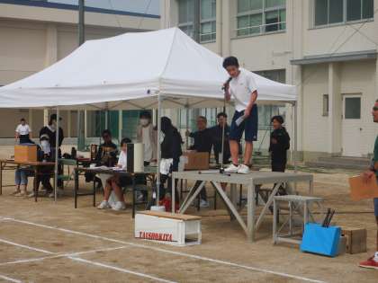 午前の部が終わり、中間発表が、担当の係り生徒からありました。