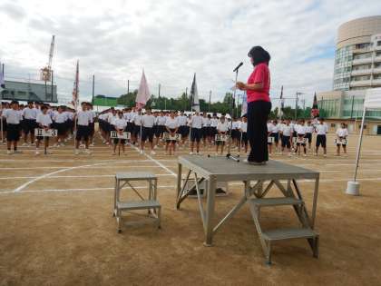 吹奏楽部の演奏で、国歌斉唱、校歌斉唱が行われ、PTA会長(代読)の挨拶がありました。