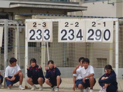 1組。56点も差があります。2組さん3組さん、がんばって〜。」