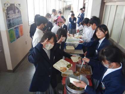 今日の給食は、豚肉のコチジャン炒め、鶏肉と春雨のスープ、きゅうりのナムルです。