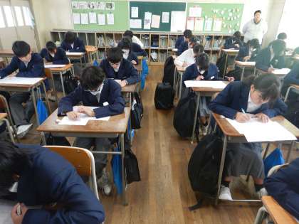 期末テスト3日目。1年生の受験の様子を見に行きました。