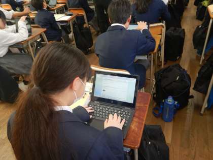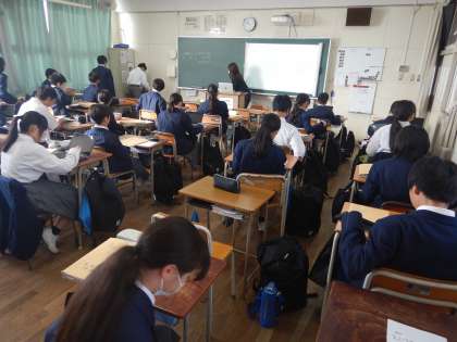 1年生の英語では、学習者用端末を活用して、英語の小テストや1時間の振り返りを行っています。1時間1時間、大切にしましょう!!