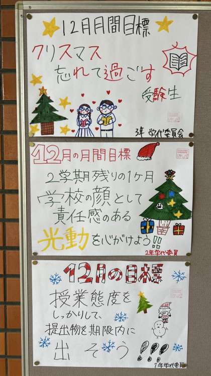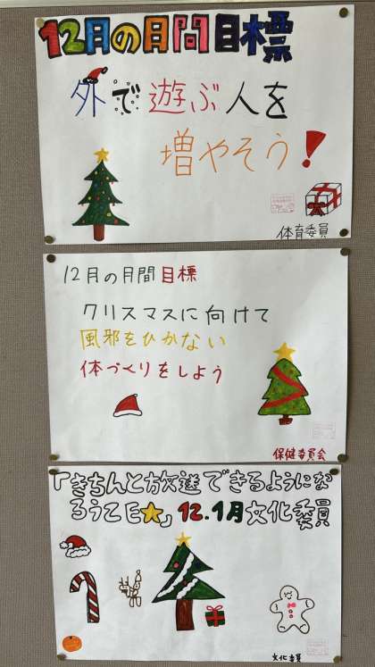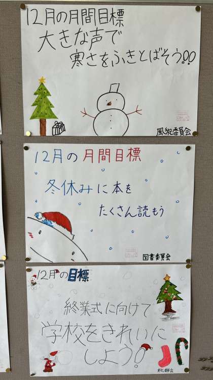 12月の各委員会からの月目標が、全校集会で発表されました。