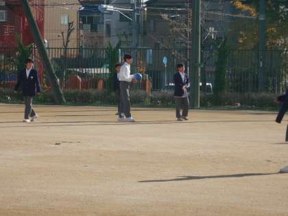 お昼休みに運動場に出てみると、子どもたちが、ボール遊びをしています。