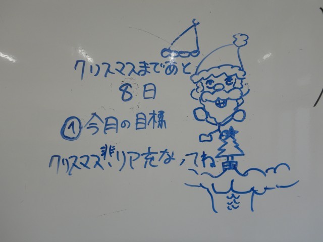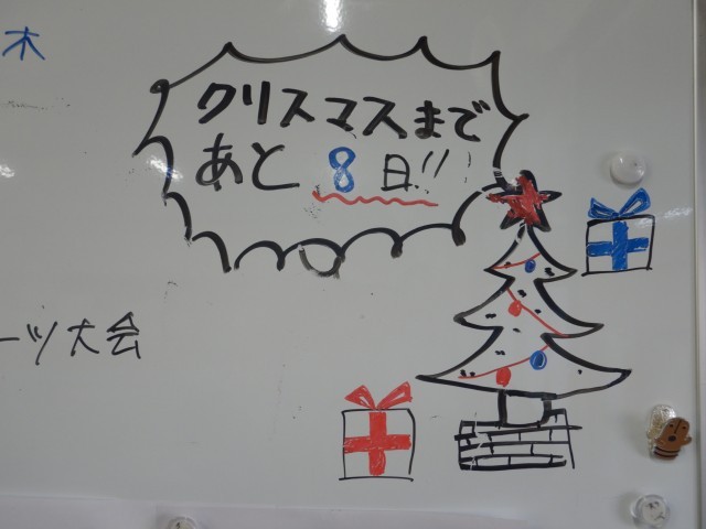1年生の教室をのぞいてみると、クリスマスまでのカウントダウンが示されていました。