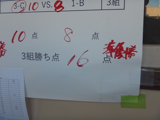 結果は、優勝2組、2位3組、3位1組でした。2組さん、おめでとうございます。1組さん、次に期待します!!