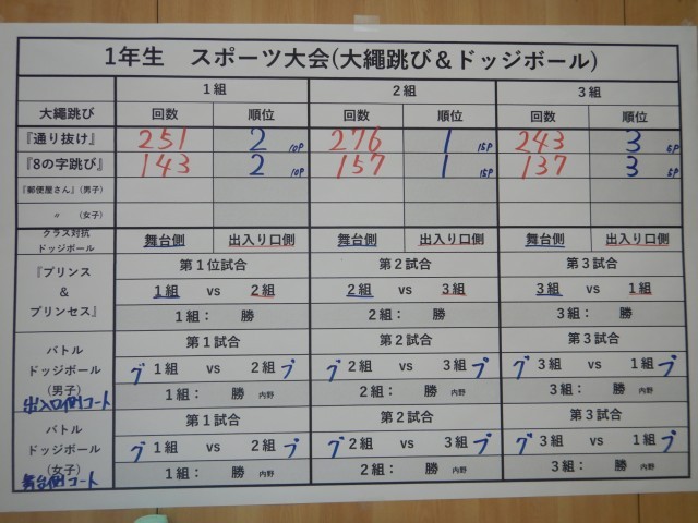 「8の字跳び」の結果が出ました。これもまた、勝ったクラスの喜ぶ様子がすごい!!