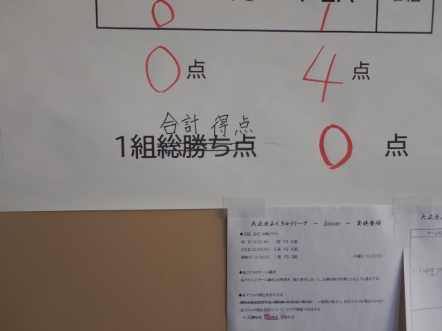 優勝は、3組!おめでとうございます。次いで2位2組。勝ち点差1!おしい!そして3位1組。勝ち点「0」!?よ、弱っ!