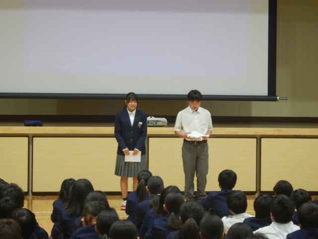 まず。各学級代表が各クラスの2学期振り返り、できたことできなかったことを発表しました。