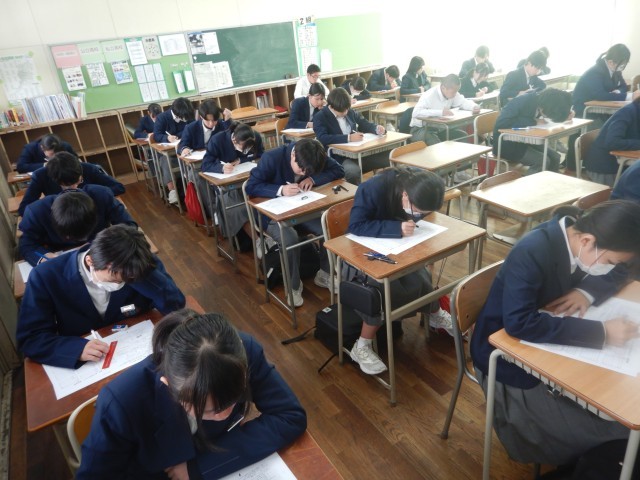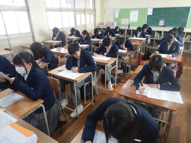 もうすでに、入試モードに入っていますので、姿勢も本番さながらです。内容が難しいので、あまりスラスラとペンは動いていませんが、大丈夫かな?採点は即日され、来週には結果がわかります。月末には学年末テスト(中学校最後のテスト)が実施されます。