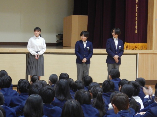 1月29日(木)に開催予定の「1年生マラソン大会」にむけて、体育委員の皆さんがスローガンを決定しました。