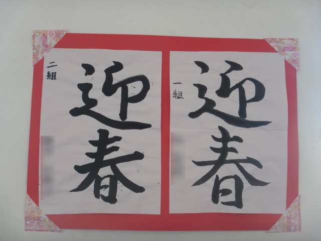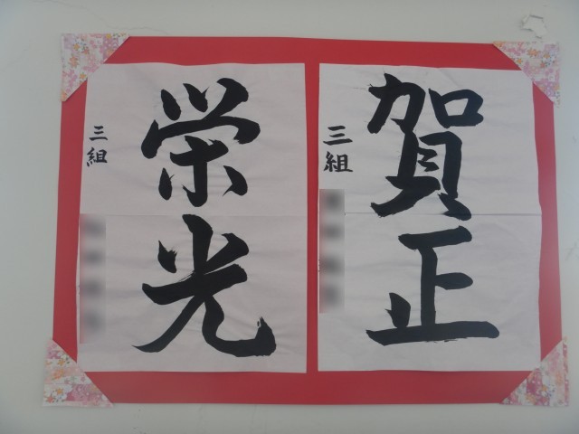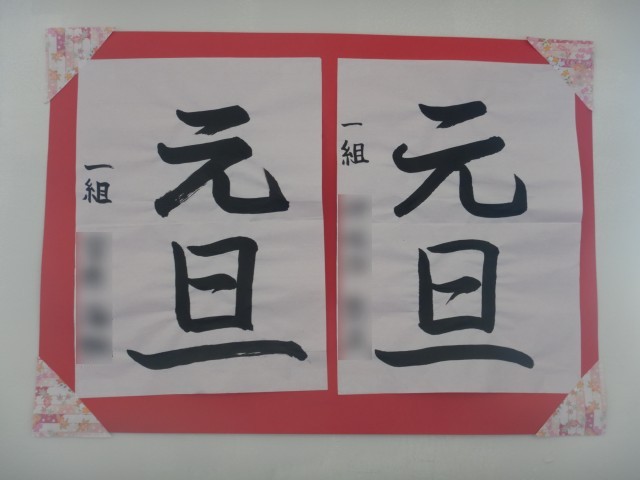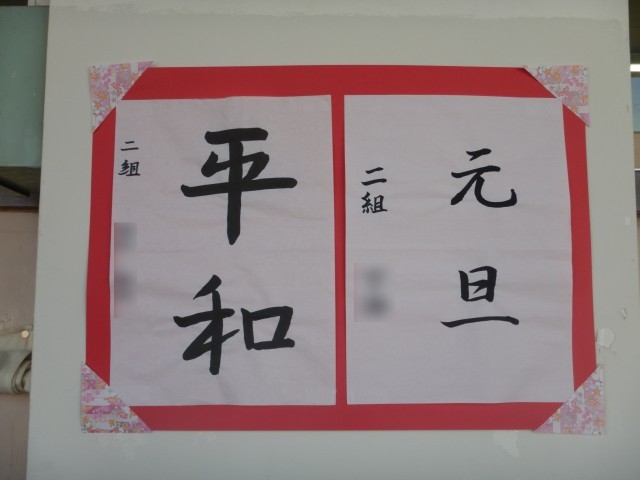 冬休みの課題で優秀な作品を選定したそう。力強い作品から、きれいなものまでさまざまですが、素晴らしい作品ですね。