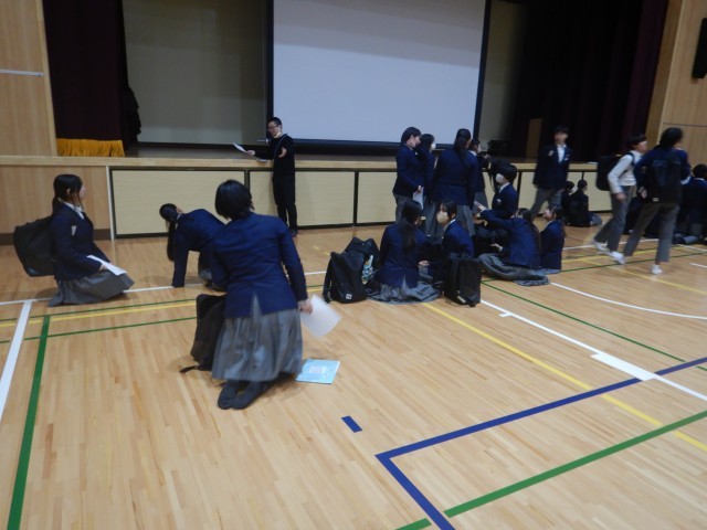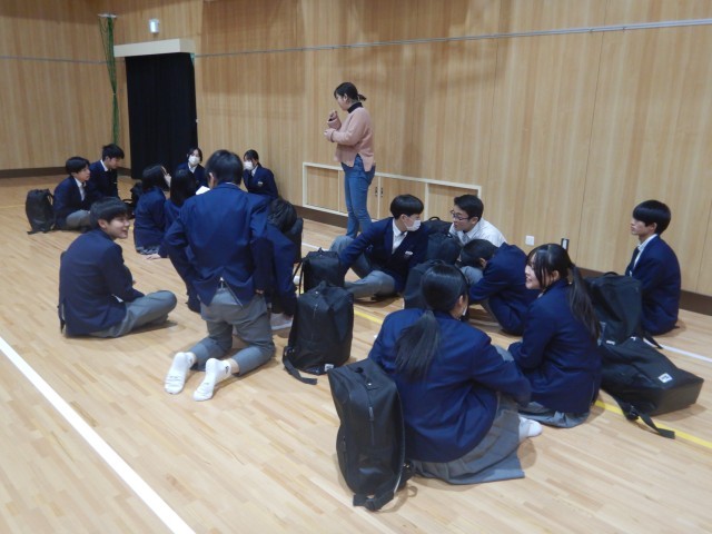 進路主事の先生から、全体に注意事項を話してもらい、その後学校別に分かれて、細かな注意を受けました。