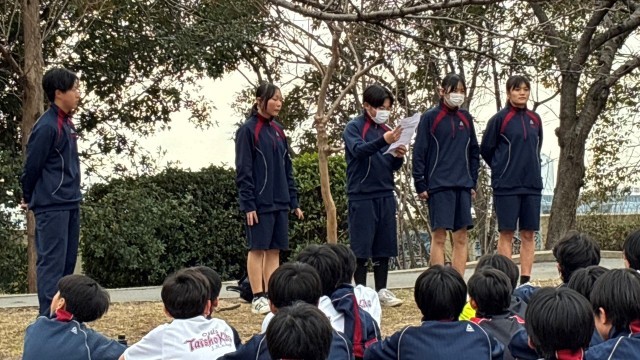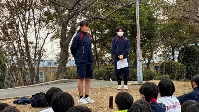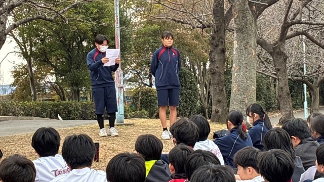 閉会式を体育館でする予定でしたが、時間がなかったため公園で行いました。表彰は、別の日に行います。