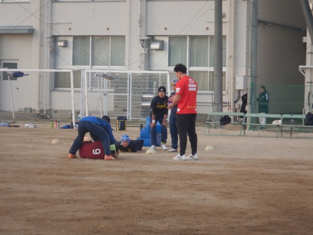 北中の生徒への練習指導のためです。プロの選手から教えてもらえる機会は滅多にないこと。元気ハツラツと練習していました。この中からプロ選手が生み出されることを願っています。