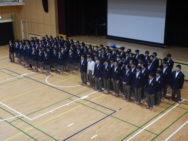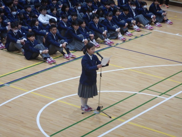 まずは、花道を卒業生が入場してきました。入場後、生徒会長から卒業生にメッセージが送られました。