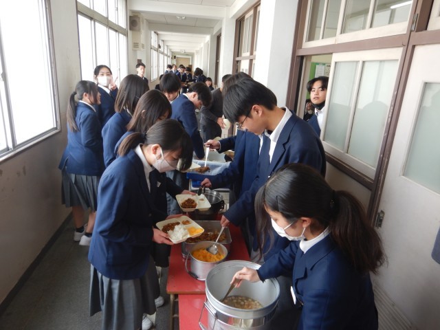 3年生の給食喫食もあと2日。残さずしっかり食べてくださいね^v^