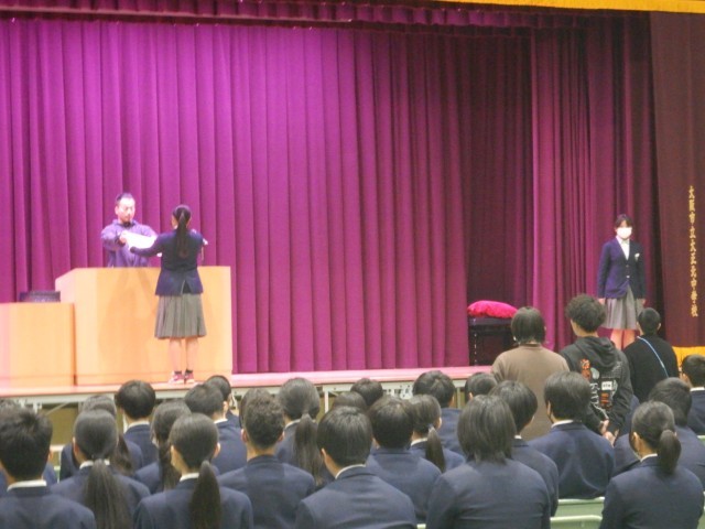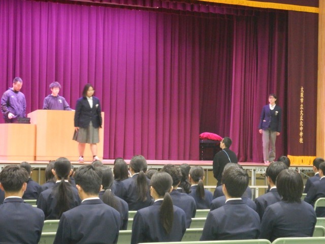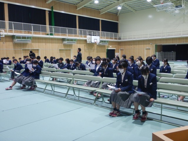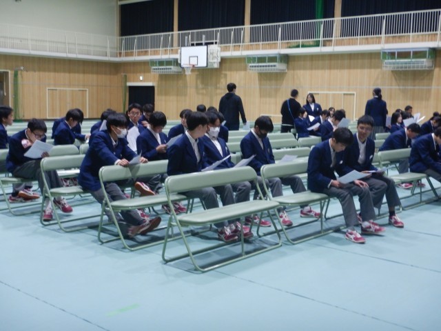 また、卒業式の練習後は、入試を受検する生徒のみ残り、事前指導を行いました。諸注意をしっかり読んで備えてください。「頑張れ!受検生!!」