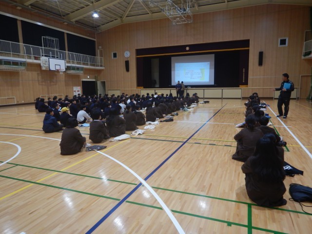 終了して、体育館で入学式の注意事項の説明を受けました。体育館に設置されているエアコンに驚いていましたね~^v^