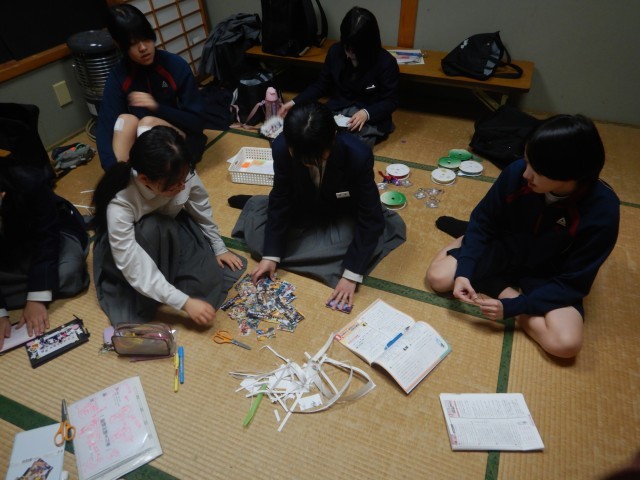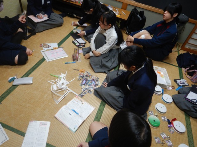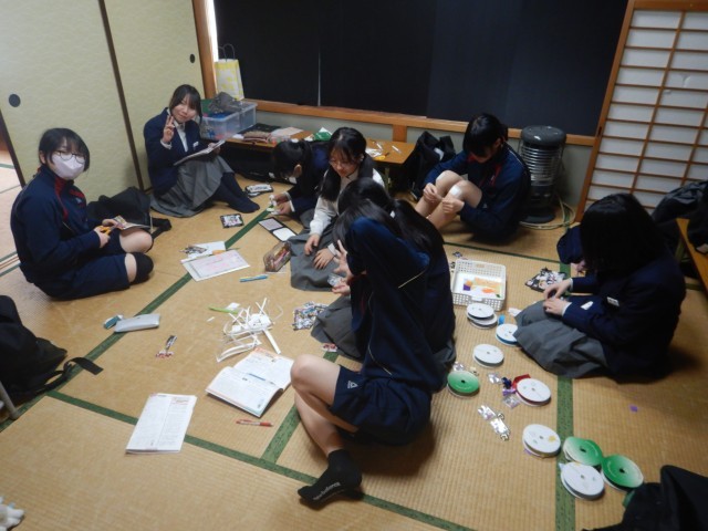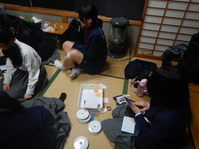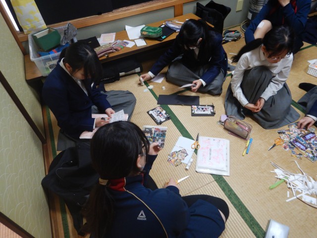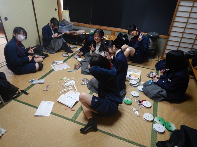 演劇部は、練習後に3年生へのプレゼントを作成しています。できあがったら直接手渡しするとか。うれしいプレゼントになるようです^v^