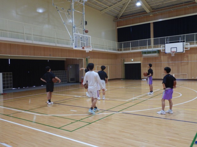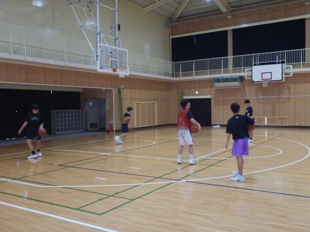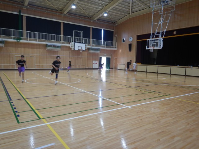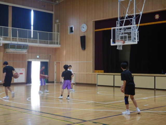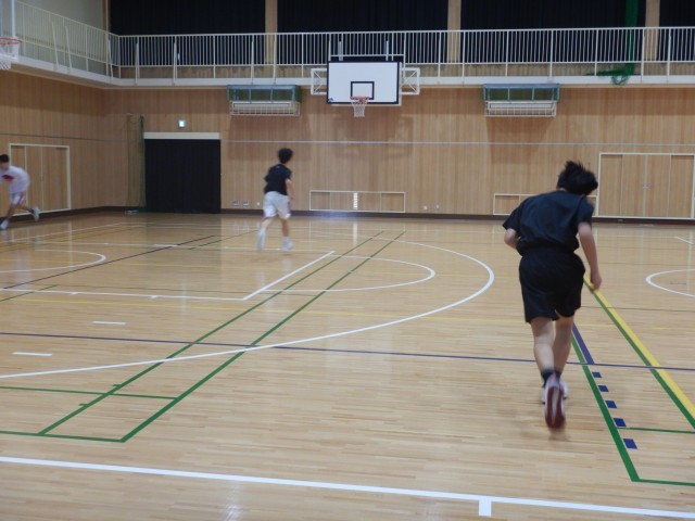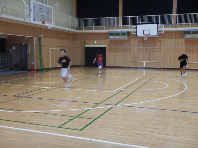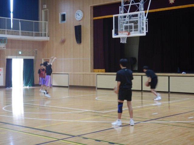 男子バスケット部は、シュートの練習中。なかなか入りませんね~。でも、3ポイントシュートは、入るのですね。しばらしい!!