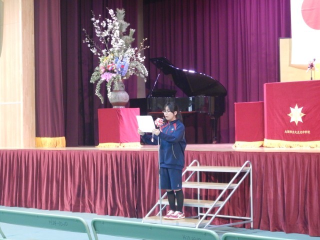 また、お祝いのことばをお話しする代表生徒も式場に来て、しっかりした口調でお話してくれました。