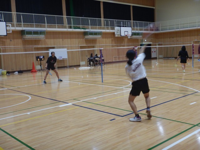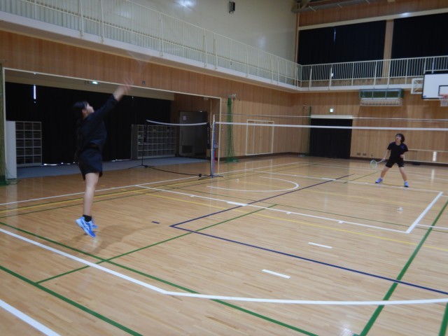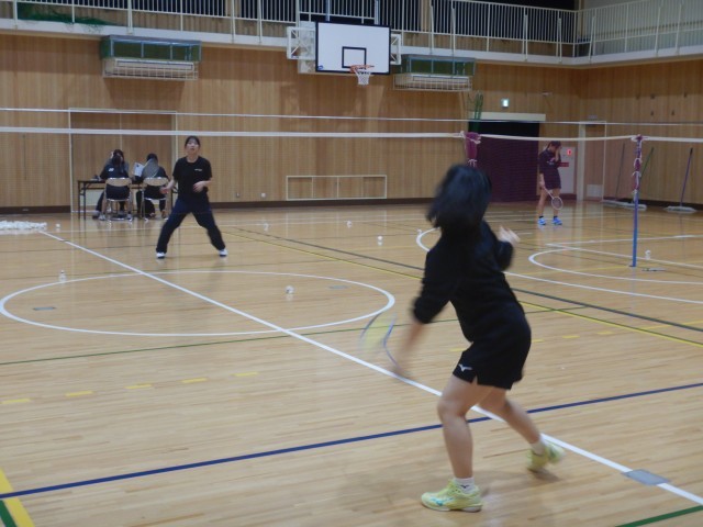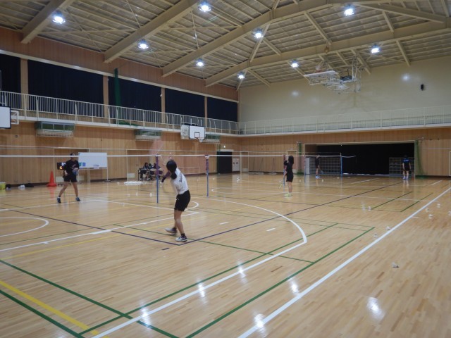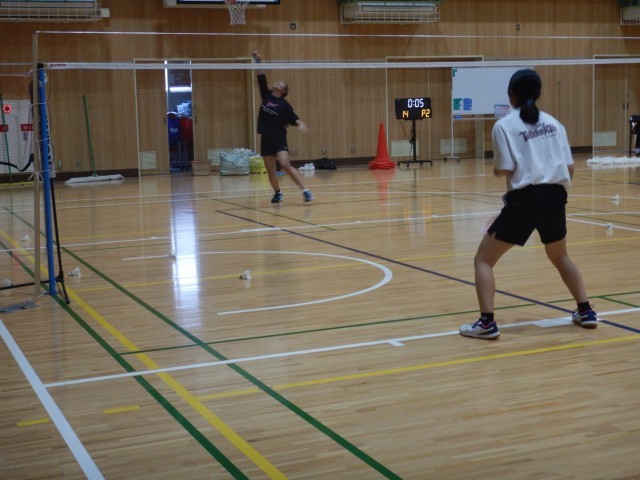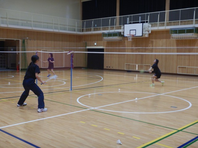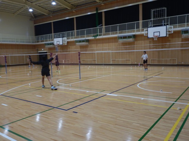 バドミントン部は、多くのシャトルを床に準備しながら、打ち合いをしています。打った後のシャトルのスピードがすごいですね!