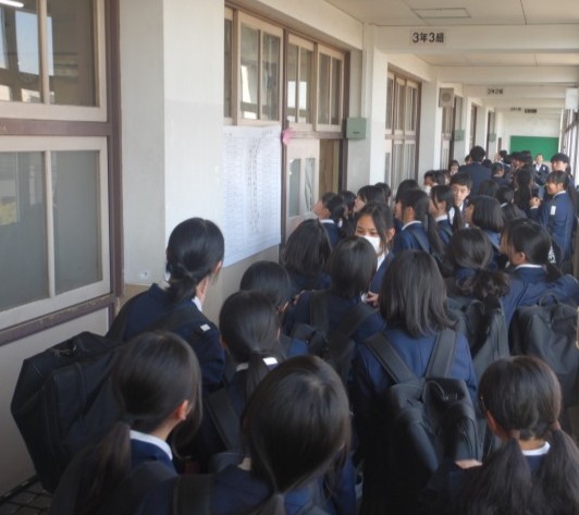 3年生の新学級の発表をしていました。どの学級になったのかな?