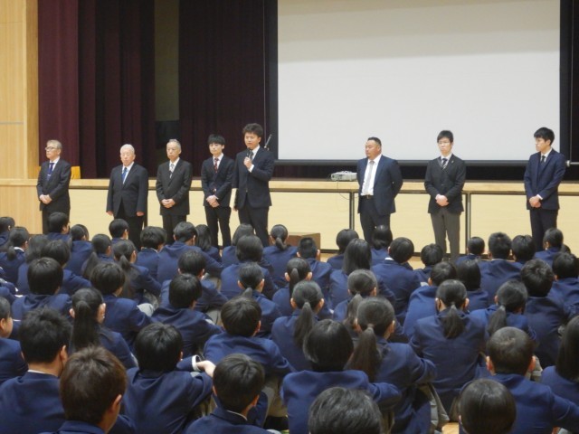 先だって、昨年度末に転勤や退職された先生方を紹介。その後、今年度着任した先生方の紹介を行いました。