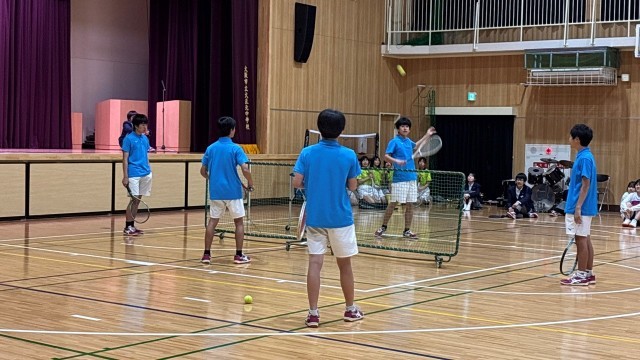 紹介も中盤。男子硬式テニス部です。ボールが固いので、ラケットのガットがボールをたたく音が心地よく聞こえます。ただ、壁に当たるボールの音は怖いぐらいでした、、。