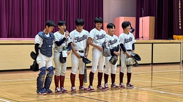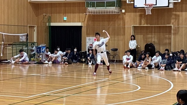続いて、野球部です。男女で入部できます。ピッチング、ノックを披露。キャッチャーミットにボールが収まる「パンッ」という音が響きました。2年生が1名しかいないので、レギュラーを取りやすいかもよ?チャンス!!