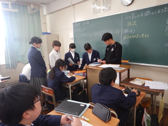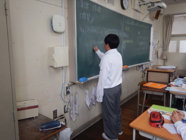 1年生の授業に入りました。「正の数・負の数」のたし算とひき算の勉強中!