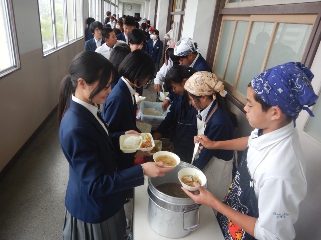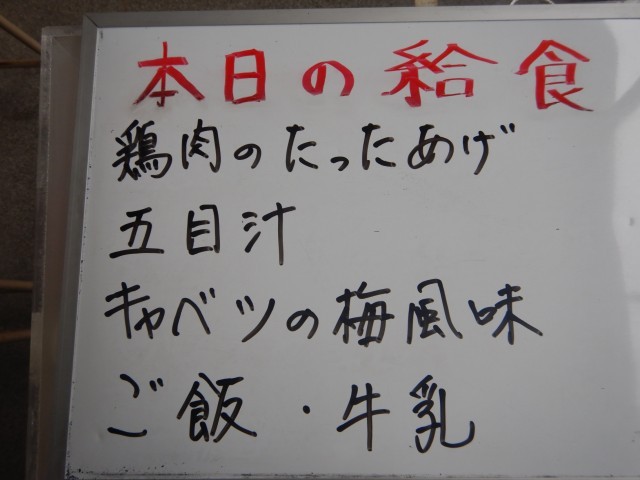 今日の給食は、鶏肉の竜田揚げ、五目汁、キャベツの梅風味です。