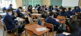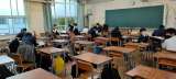 2分前には着席している46期生。 が、5分前に静かにひたすら漢字テストに向けて勉...
