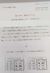 期末テストの日程が一部変更になります。 手紙を配布しておりますのでご確認下さい。