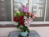 職員室前の廊下。 たくさんの花たちが、心地よい香りを醸し出しています。 ...