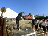 本日の結果が発表され、表彰式に。 吹奏楽部の演奏のもと、賞状と楯が手渡され...