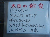 今日の給食は、ビーフシチュー、ブロッコリーのサラダ、洋ナシ(カット缶)、スライス...