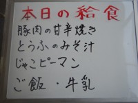 今日の給食は、豚肉の甘辛焼き、豆腐の味噌汁、じゃこピーマンです。 じゃこは、頭か...