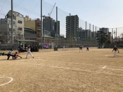4月7日(日) 8:30〜五条グラウンドで、天王寺中学校PTA男子ソフトボールの皆さんが、大江小学校を相手に試合をしています。