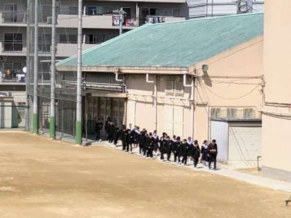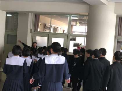 5時間目、1年生は担任・副担任の先生に引率されて、校舎見学をしています。