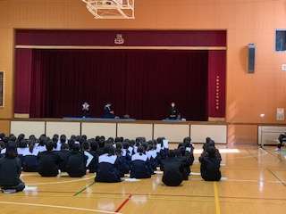 新入生に部活動の紹介をしました。まずは、合唱部、美術部、茶道部です。