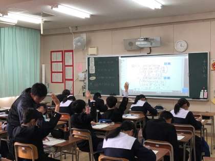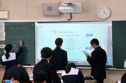 4月17日(水) 2年生の数学の授業の様子です。x,yを使った多項式の計算について、学習していました。たくさん手も上がっていました。